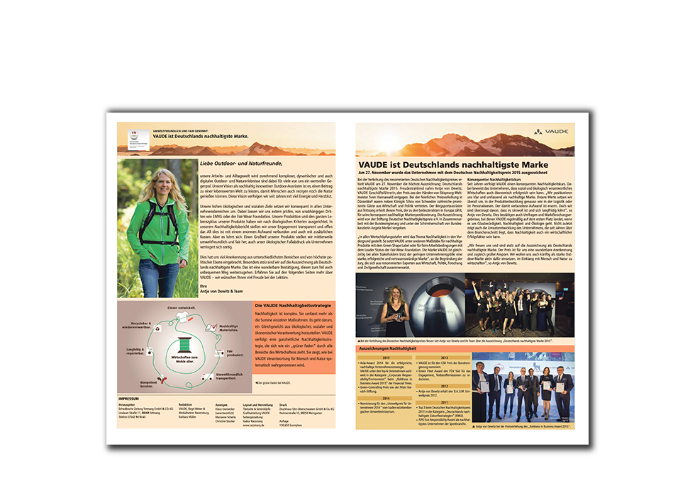 Komplette Gestaltung Zeitungsbeilage für Firma VAUDE
