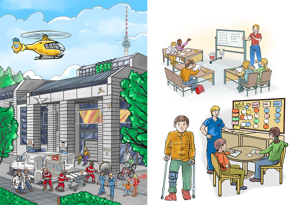 Umschlag-Illustration Charité Kinderkrankenhaus / Innenillustrationen