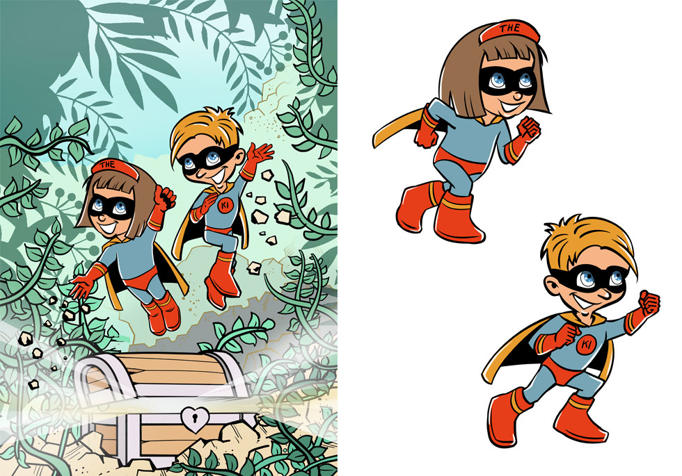 Maskottchen für ein Hausaufgabenheft (Helden)